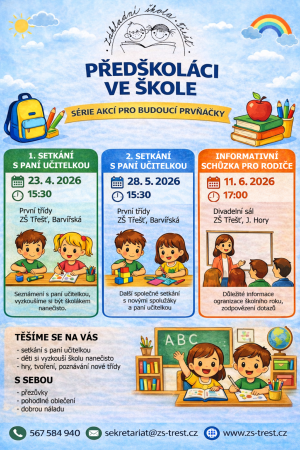 Setkání proběhnou ve dvou termínech v prvních třídách ZŠ Třešť, Barvířská 30: