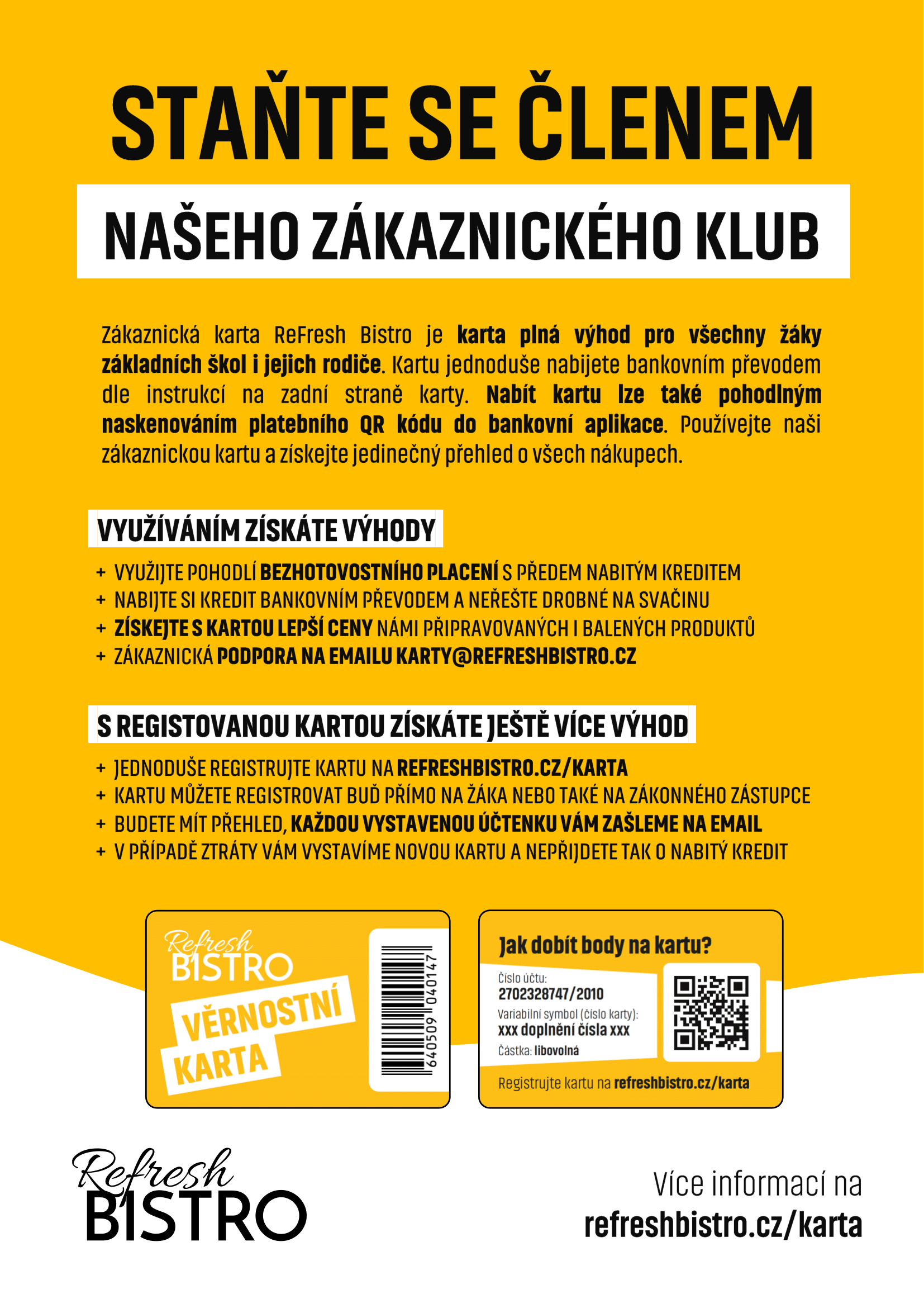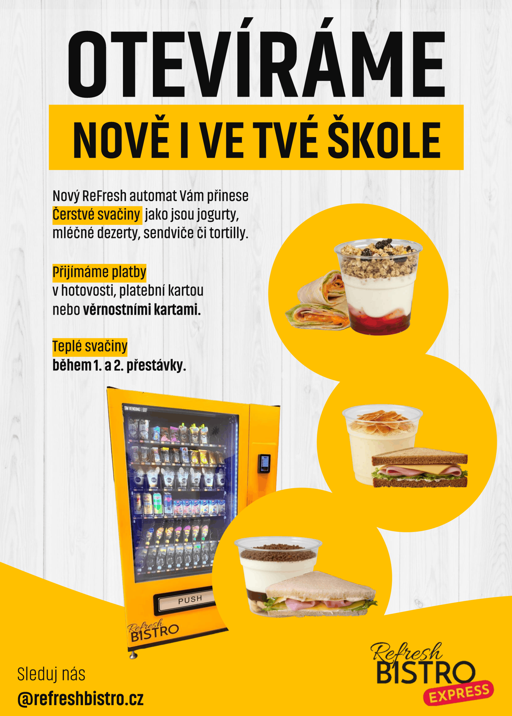 s velkou radostí Vám oznamujeme, že na naší škole bude spuštěn provoz školního občerstvení ReFresh Bistro.